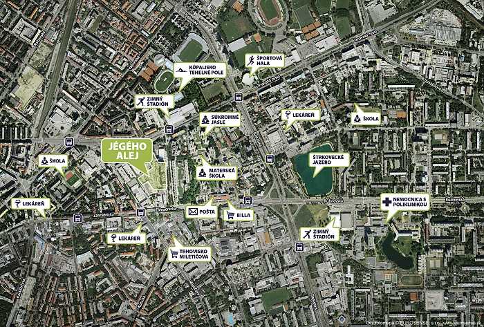 Nové byty v Bratislave sa nachádzajú v nádhernej Jégého aleji, ktorá patrí medzi najatraktívnejšie oblasti pre bývanie v Bratislave. Táto lokalita ponúka toho skutočne veľmi veľa. Nachádza sa tu množstvo príležitostí na športové vyžitie, a to napríklad plaváreň, zimný štadión, Národné tenisové centrum či basketbalová hala Pasienky. Pre mamičky s deťmi sú tu skvelé podmienky na pokojné prechádzky okolo Štrkoveckého jazera, ktoré je pre nich veľkým lákadlom. Nájdete tu samozrejme i detské ihriská či rôzne zábavné atrakcie, takže nudiť sa určite nebudete. Keďže ide o mestskú časť s veľmi dobrou polohou, len 12 minút odtiaľto sa nachádza centrum mesta, kde nájdete všetko na jednom mieste. Výborné dopravné spojenie tu zabezpečuje MHD, takže sa nemusíte báť problémov s dopravou.